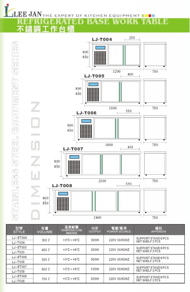 備註 : LJ-T 不鏽鋼門工作台冰箱