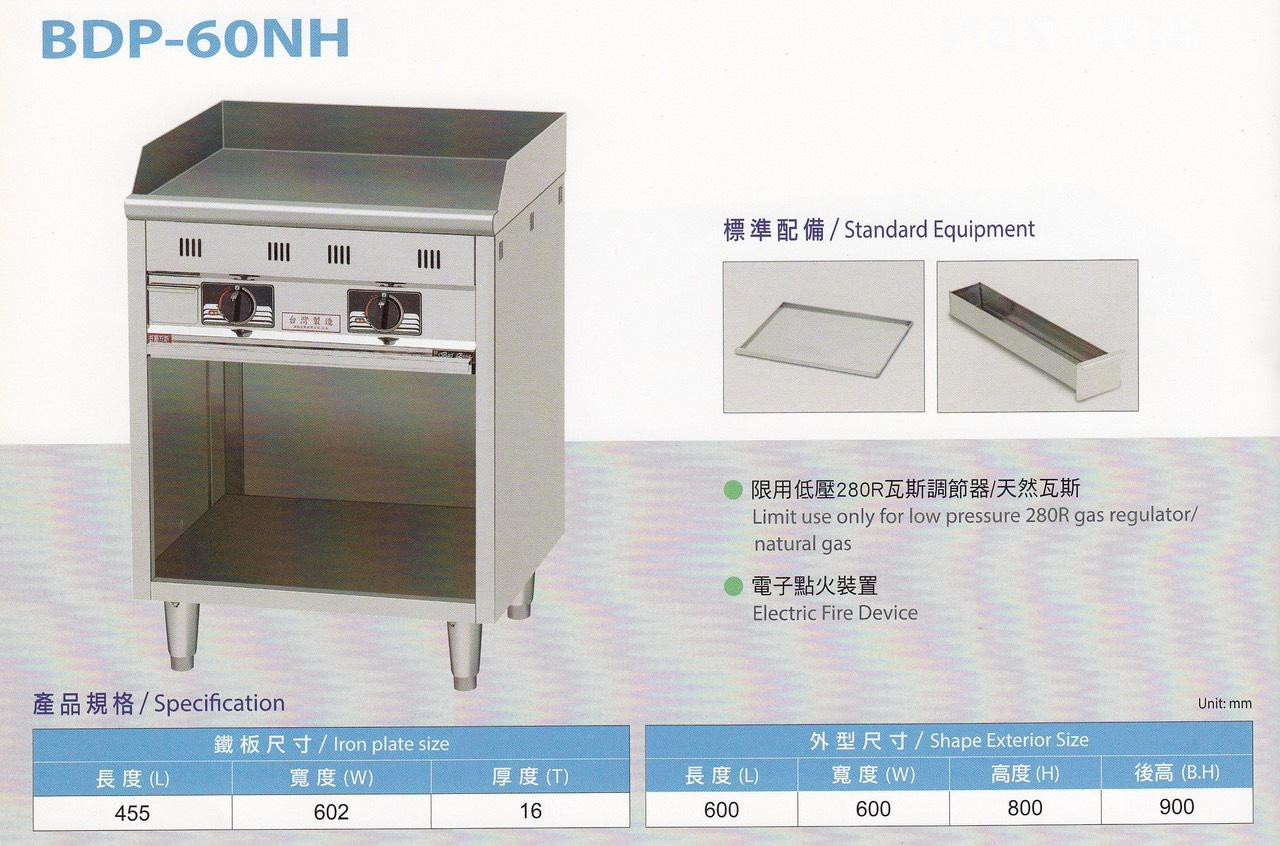 煎台使用平衡活動調整腳,電子點火裝置,低壓瓦斯,使用天然氣需特別告知。